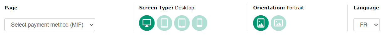 In each of these modes, a banner of options enables you to test the appearance of your payment pages according to several parameters: screen type, orientation and language.