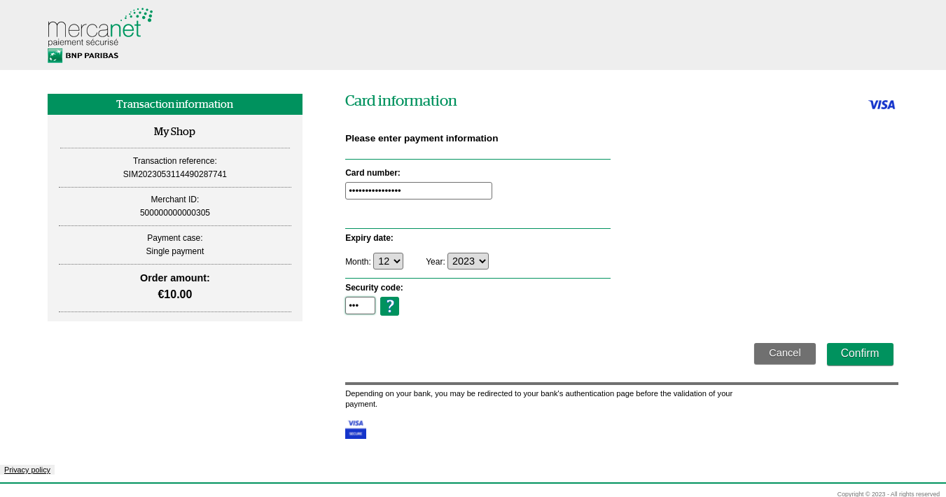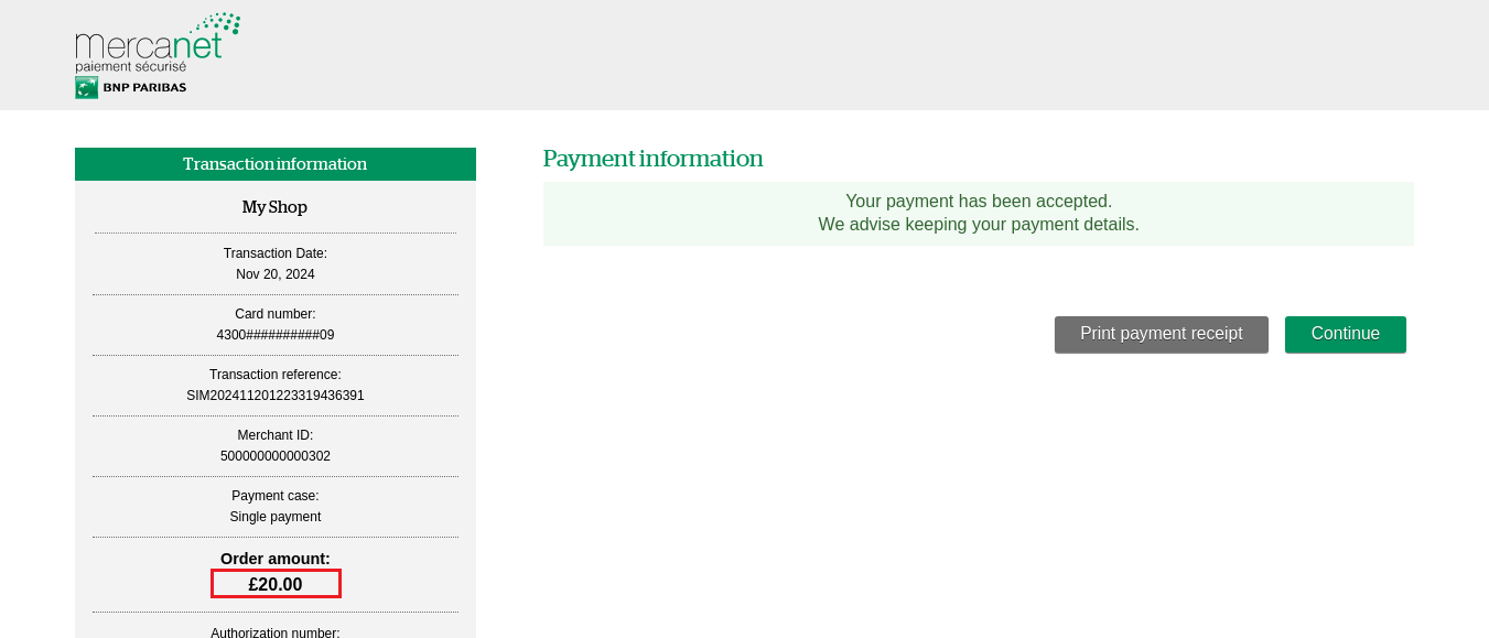 | transactionId generated by Mercanet | Standard use case | N/A | generated by Mercanet and displayed in red |