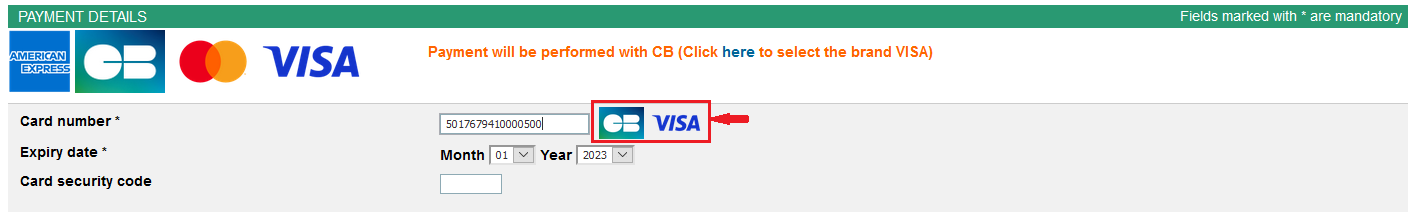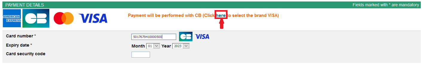 Some cards may belong to several networks (for example cards co-badged with CB and VISA). A European regulation (Multilateral Interchange Fee, or MIF) gives you the possibility to make a default brand choice, but the end customer can change this choice when he is on the payment page. This regulation concerning the selection of the brand has an impact on the payment pages which must present this choice when the card entered for payment is concerned by this regulation (co-branded card) .