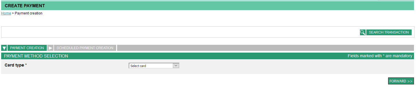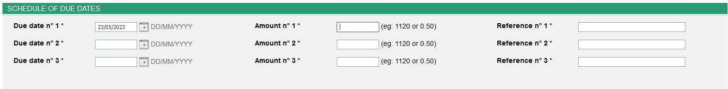 In the "means of payment details" and "transaction details" sections, fill in the following fields: