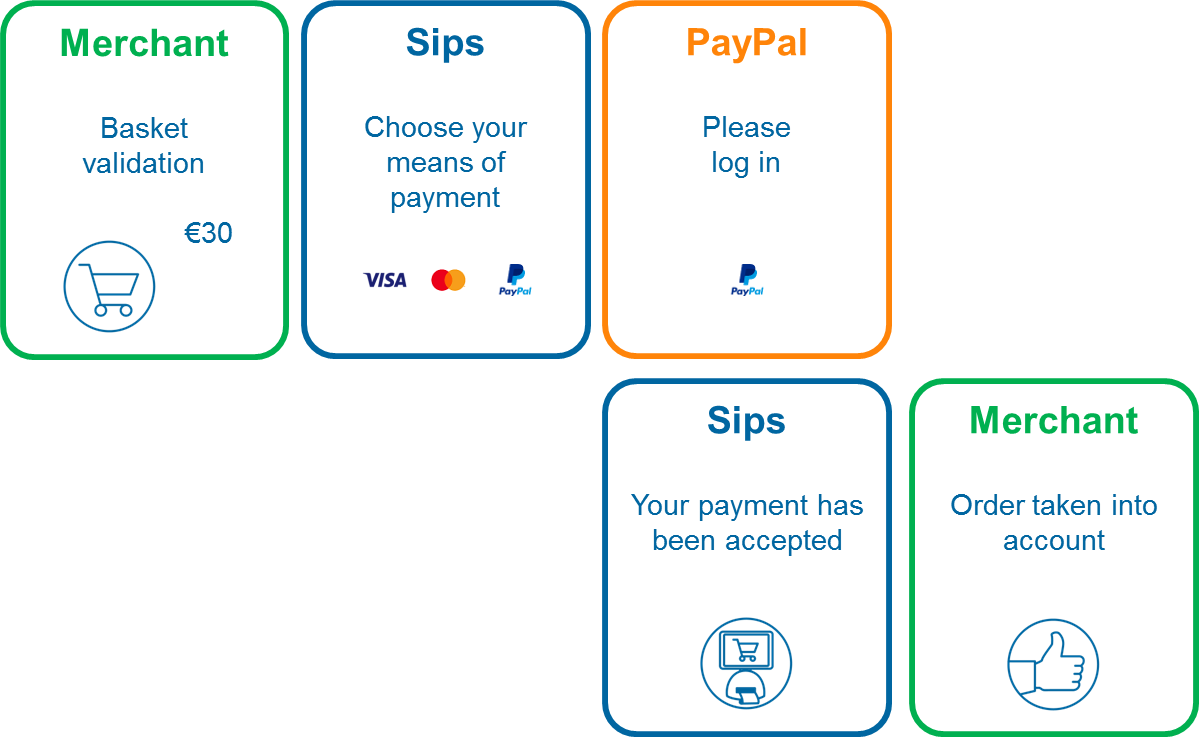 - customer authentication on a PayPal page and means of payment validation,