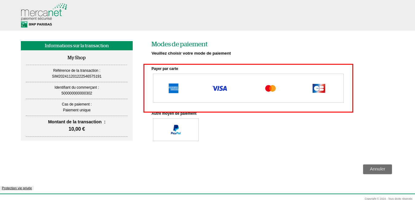 Pour cette cinématique de paiement, Mercanet n'est pas