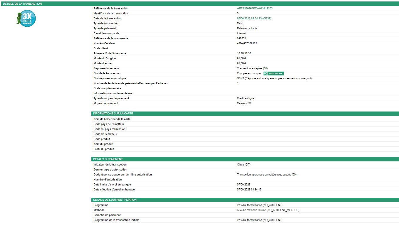 Dictionnaire des données).paymentMeanBrand = CETELEM_3X