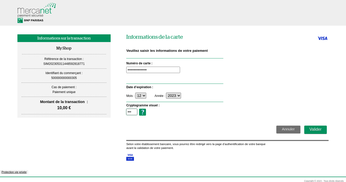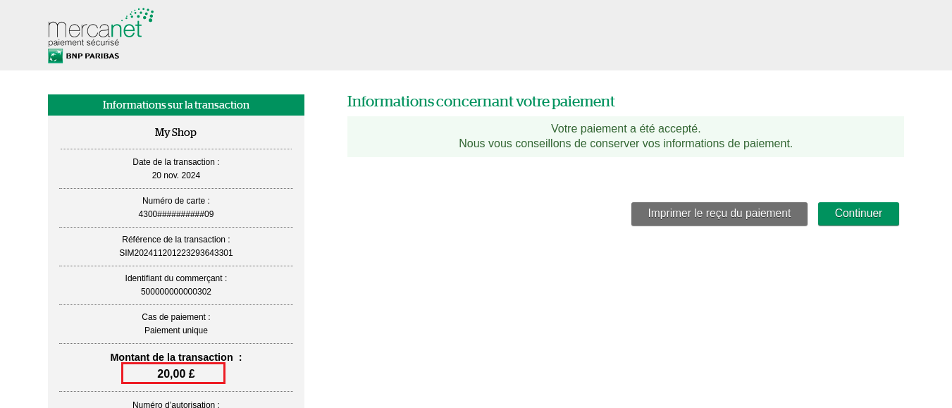 | transactionId généré par Mercanet | Traitement standard | N/A | généré par Mercanet et affiché en rouge |