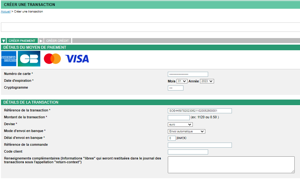 | Référence complémentaire générée par Mercanet | transactionReference s10TransactionId s10TransactionIdDate | transactionReference s10TransactionId s10TransactionIdDate | |