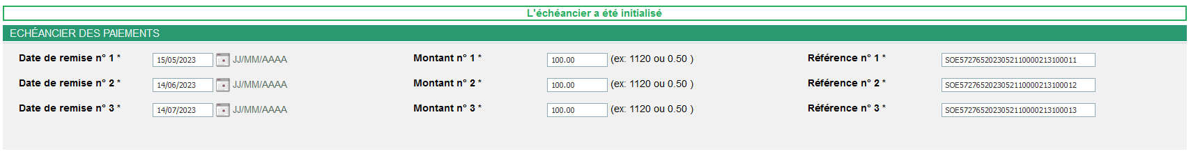 . L’échéancier est alors automatiquement pré-rempli en