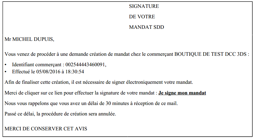 La page de confirmation de modification du mandat s'affiche :