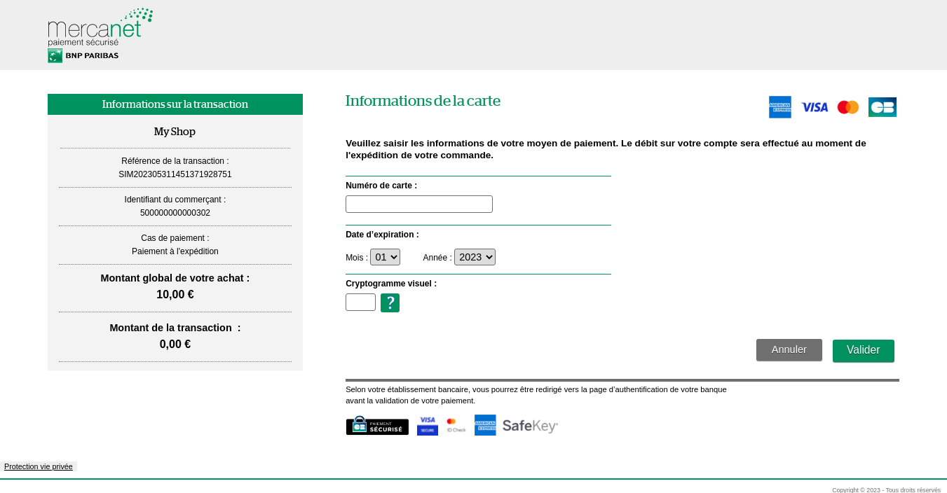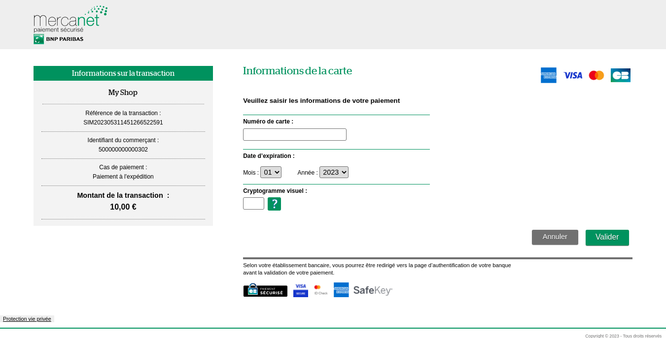 - Mercanet procède à la vérification 3-D Secure.
