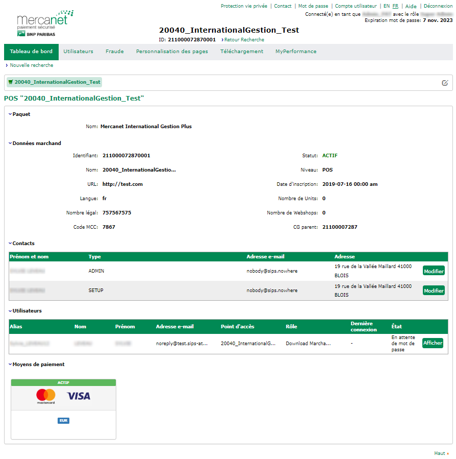 | Hébergée chez | BNP Paribas | Page conteneur de l'iFrame : commerçant Contenu de