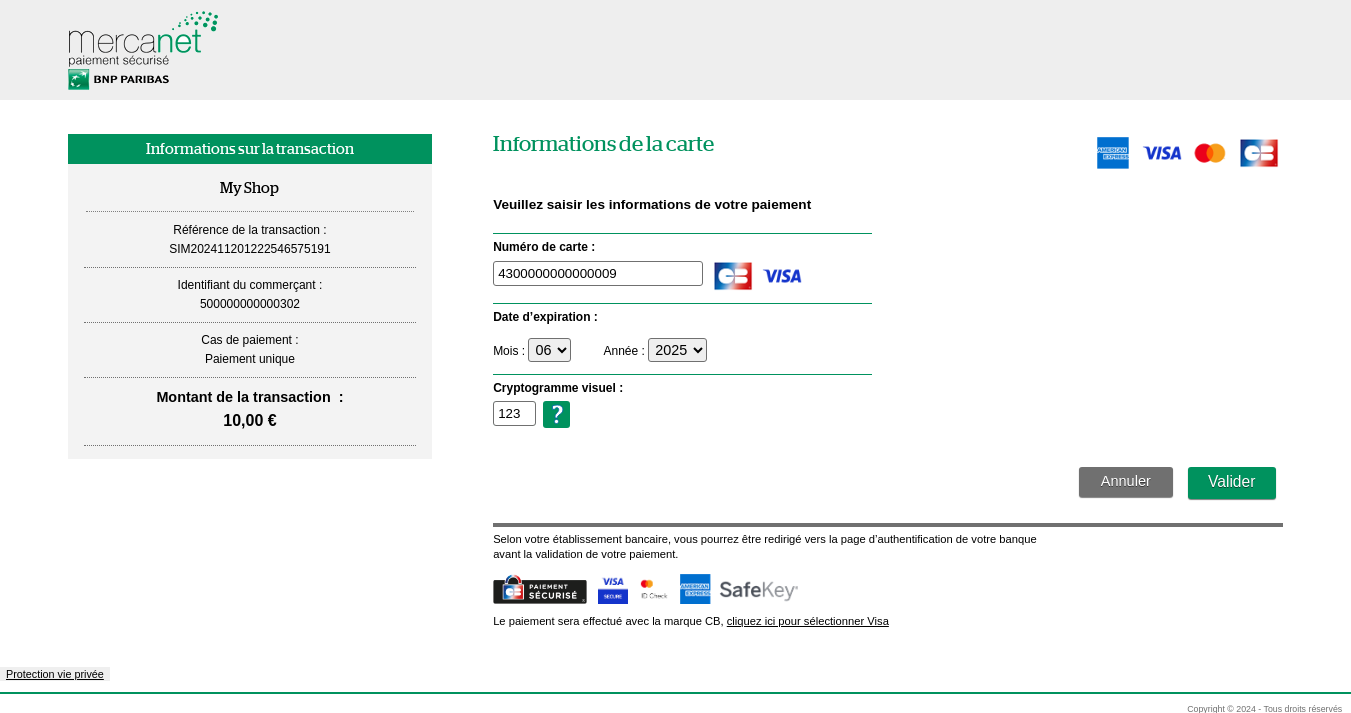 L’utilisation de Mercanet nécessite l’obtention préalable d’un (ou plusieurs) contrat(s) d’acquisition, souscrit(s) auprès de BNP Paribas en fonction des moyens de paiement que vous souhaitez.